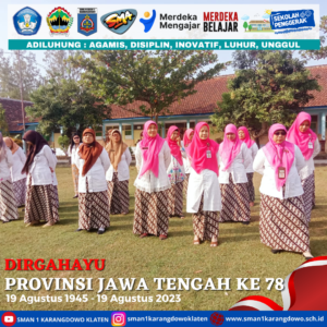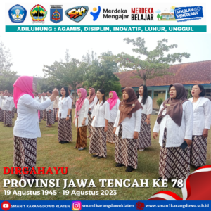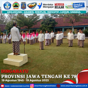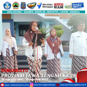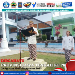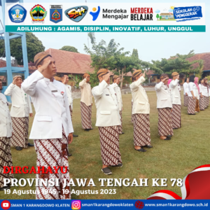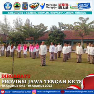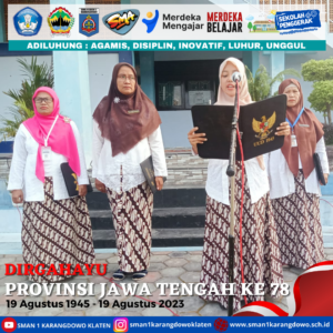 simple-ajax-chat domain was triggered too early. This is usually an indicator for some code in the plugin or theme running too early. Translations should be loaded at the init action or later. Please see Debugging in WordPress for more information. (This message was added in version 6.7.0.) in /home/smankar5/public_html/wp-includes/functions.php on line 6131Pada hari Sabtu, 19 Agustus 2023 bapak ibu guru beserta seluruh tenaga kependidikan melaksanakan upacara dalam rangka memperingati hari jadi Provinsi Jawa Tengah yang Ke 78. Dalam pelaksanaan upacara ini peserta menggunakan pakaian adat jawa tengah.