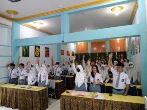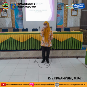 Pada materi ini disampaikan oleh Ibu Dra. Iswahyuni, M.Pd. Siswa di ajak untuk memahami dan mengenal mengenai pengertian tentang OSIS, Kedudukan organisasi OSIS dilingkungan sekolah, Makna tentang logo OSIS, Serta pembuatan struktur organisasi OSIS Tahun 2022/2023 beserta dengan tugas dan wewenang masing masing bidang.