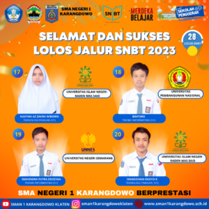 simple-ajax-chat domain was triggered too early. This is usually an indicator for some code in the plugin or theme running too early. Translations should be loaded at the init action or later. Please see Debugging in WordPress for more information. (This message was added in version 6.7.0.) in /home/smankar5/public_html/wp-includes/functions.php on line 6131Alhamdullilah. Barakallah, Selamat untuk siswa-siswi SMA Negeri 1 Karangdowo yang telah lulus SNBT 2023 di kampus dan jurusan impian masing-masing. Dan bagi yang belum tetap semangat yaa, Masih banyak jalur yang bisa dilalui.